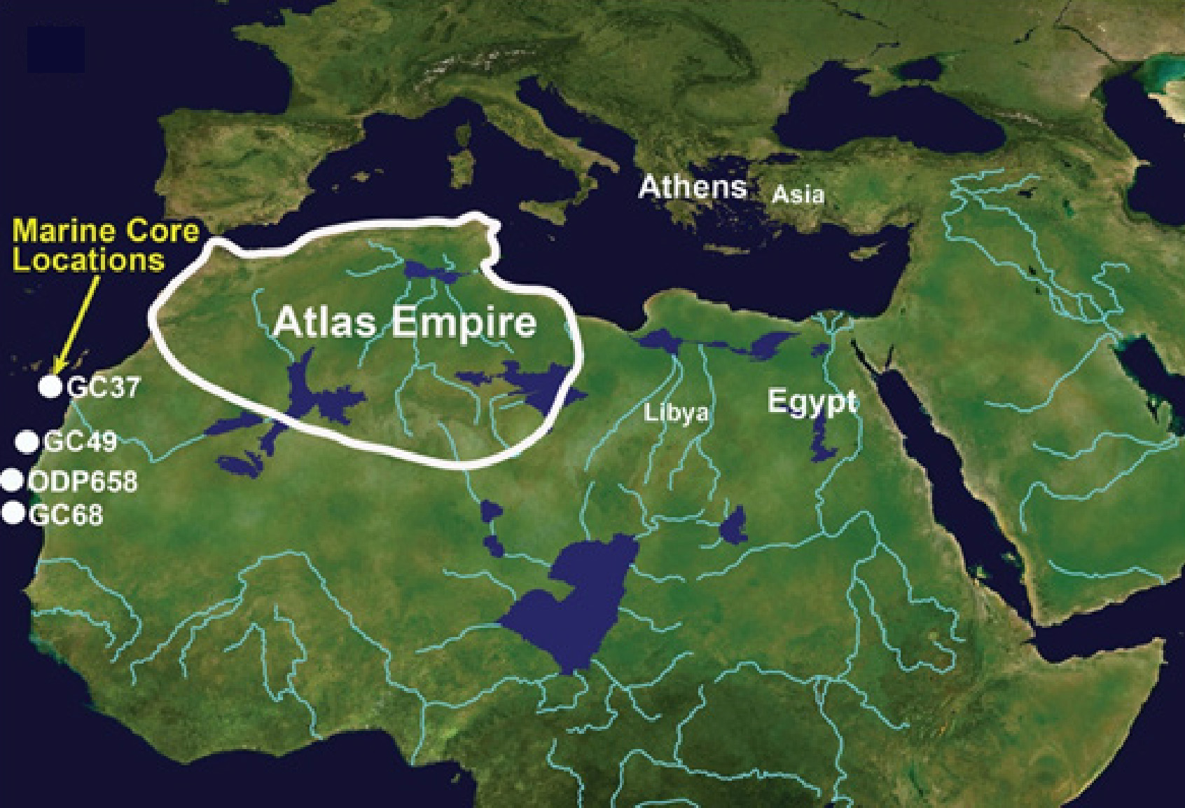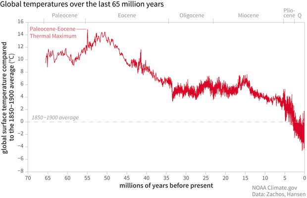 On a grand time scale, the North Atlantic ocean gateway (called the Greenland-Scotland Ridge) started opening to Artic waters about 54 million years ago, gradually driving down global temperatures about 16°C (29°F).