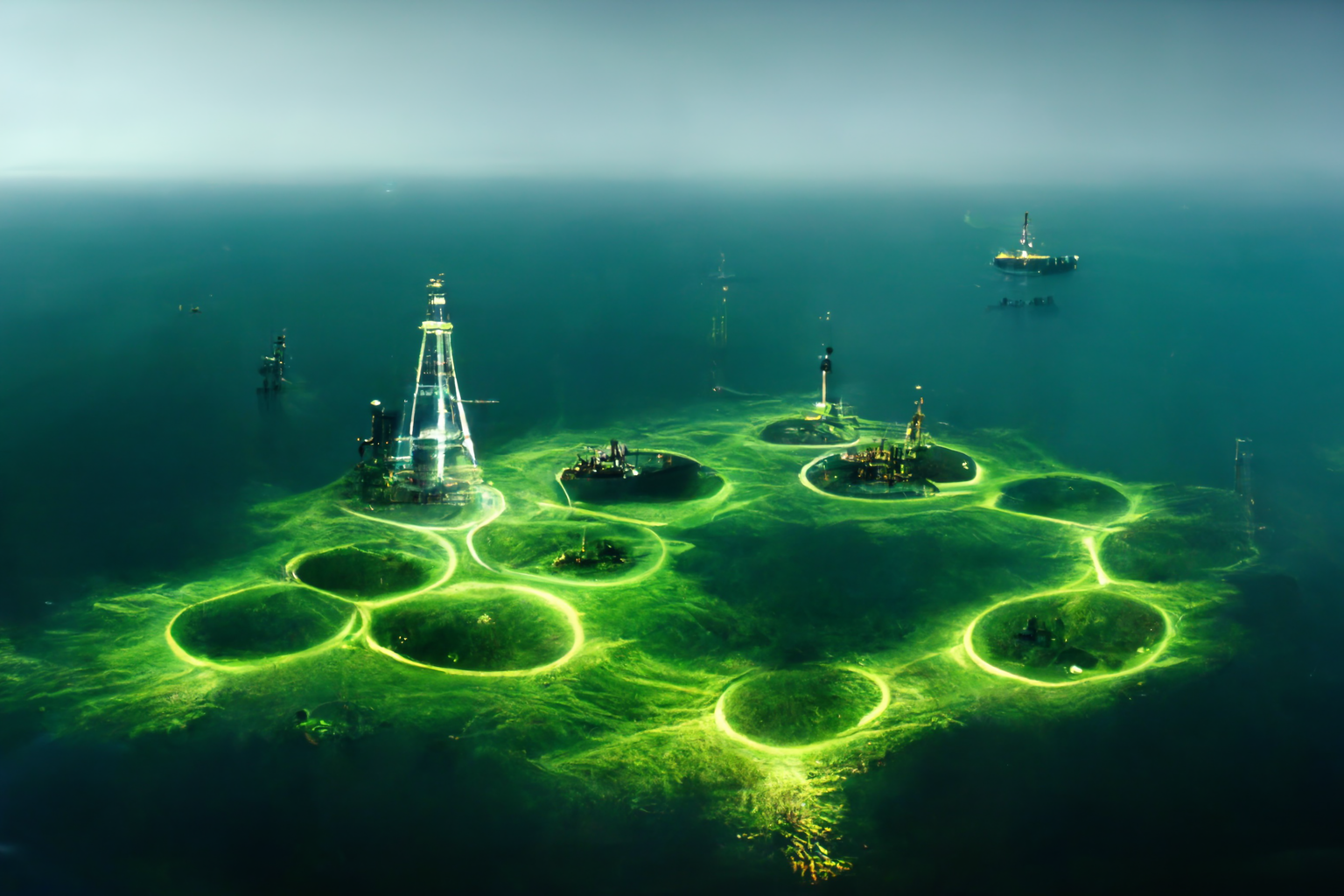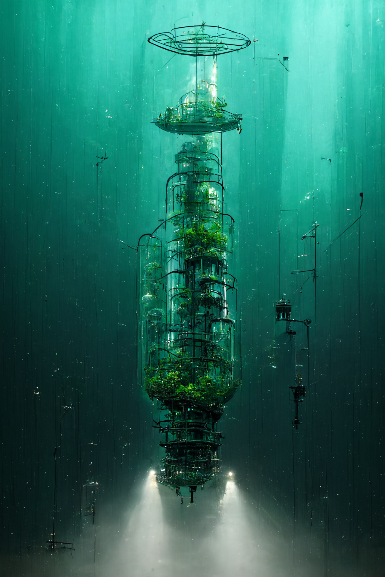 Then we expanded our water cleaving, carbon capture and parts fabrication using vertical underwater towers that rapidly grew phytoplankton fertilized with iron dust.